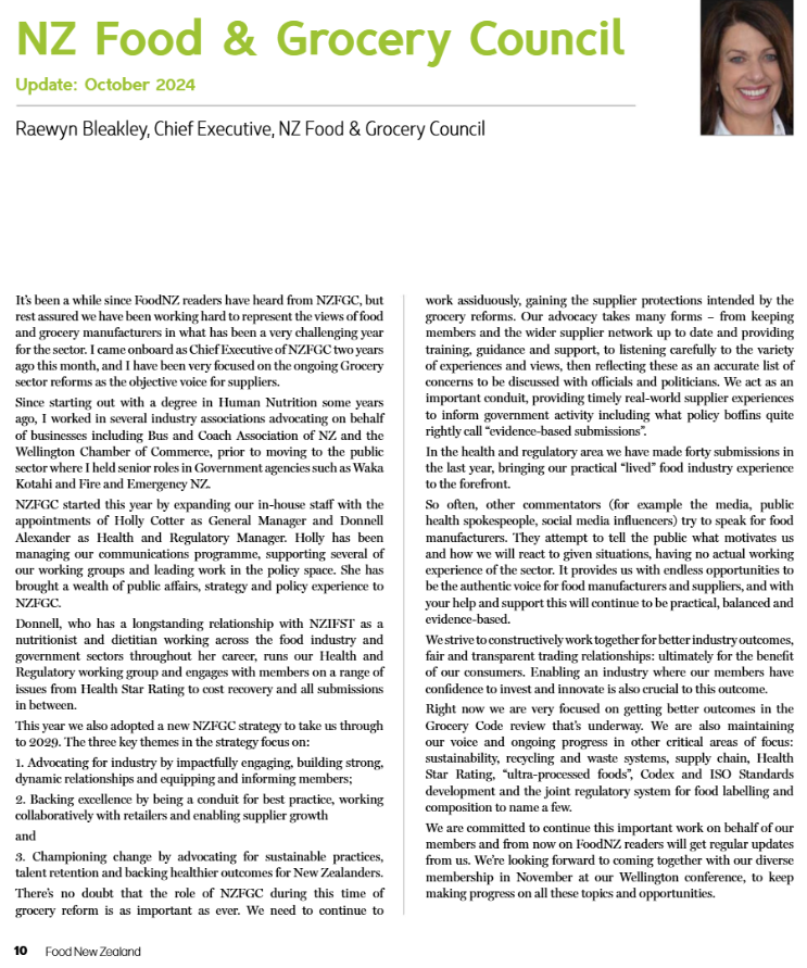 FoodNZ Column: October UpdateNZFGCOct 25, 20241 min readFoodNZ Column: October UpdateFood New Zealand by NZ Institute of Food Science and Technology - Issuu