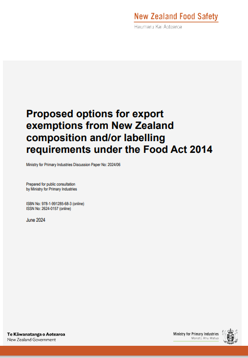 MPI is currently consulting on options for export exemptions from New Zealand composition and/or labelling requirements under the Food Act 2014.