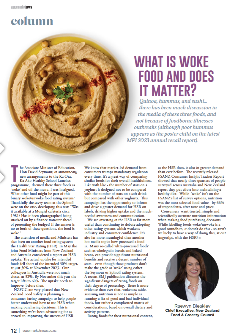 We see investing in the HSR as far more useful than continuing to debate adopting other rating systems which weakens industry and consumer confidence. It’s also far more meaningful than another hot media topic: how processed a food is. Many so-called ‘ultra-processed foods’ such as wholegrain breads and baked beans, can provide significant nutritional benefits and receive a decent number of stars – even though these products don’t make the grade as ‘woke’ using either the Seymour or Spinoff rating system. A recent BMJ publication discusses the significant dangers of rating foods on their degree of processing. There is more evidence than ever that, wokeness aside, assessing nutrition is not as simple as running a list of good and bad individual foods, but rather a complicated matrix of considerations, based on overall dietary and activity patterns.